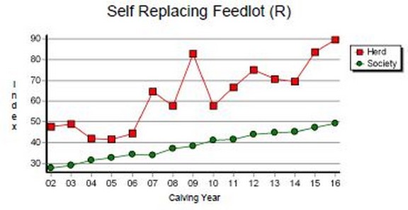 The BTB Herd's $SRF Index performance benchmarked against the breed.